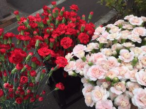 ご希望の方に先着でカーネーションを差し上げ、当日お参りに行けない方には代行で献花をさせていただきました。