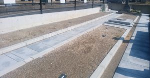 またこの区画のお墓は外柵をせり上げたデザインを採用しました。これにより屈まなくてもお墓参りすることが出来ます。